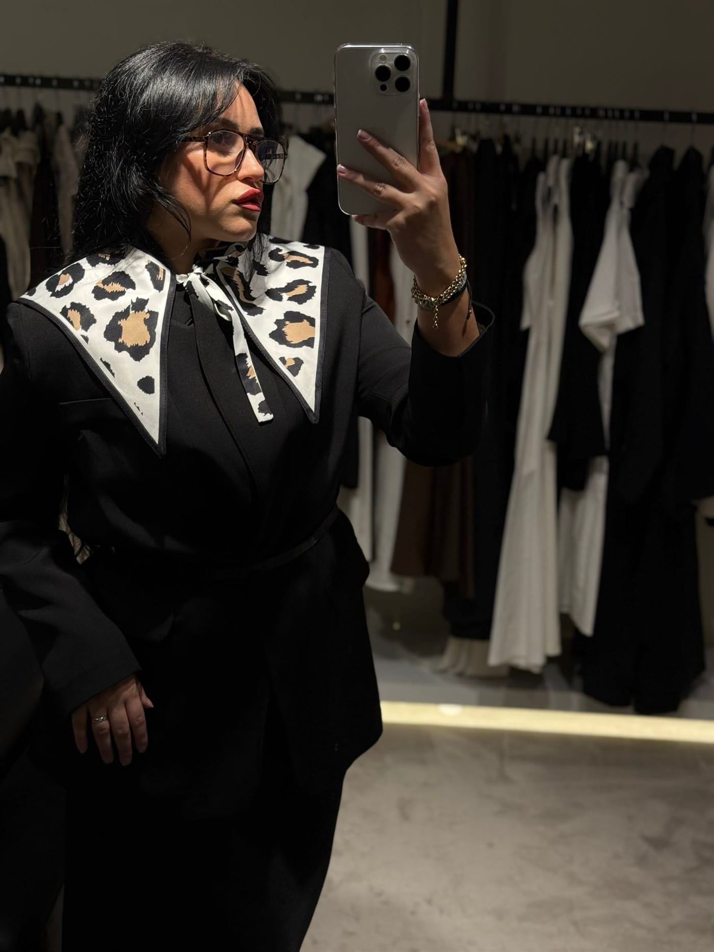 Kare formdaki desenli yakalık flar, ister ceketle ister gömlekle kombinle, her zaman şıklığını ön plana çıkar.