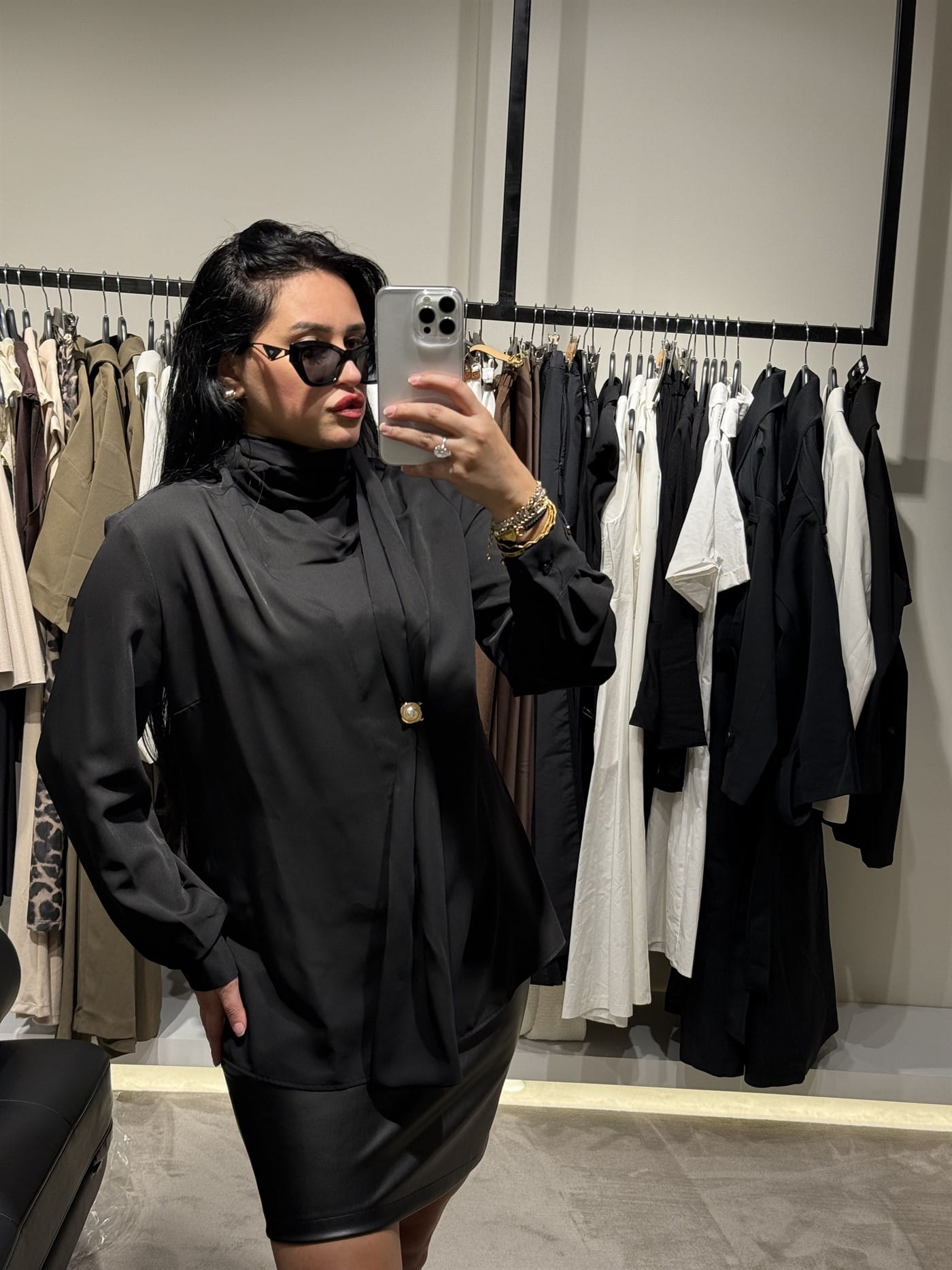 • Uyumlu Parçalar: Deri veya saten etek, kumaş pantolon, topuklu ayakkabı, gold takılarla mükemmel tamamlanır.